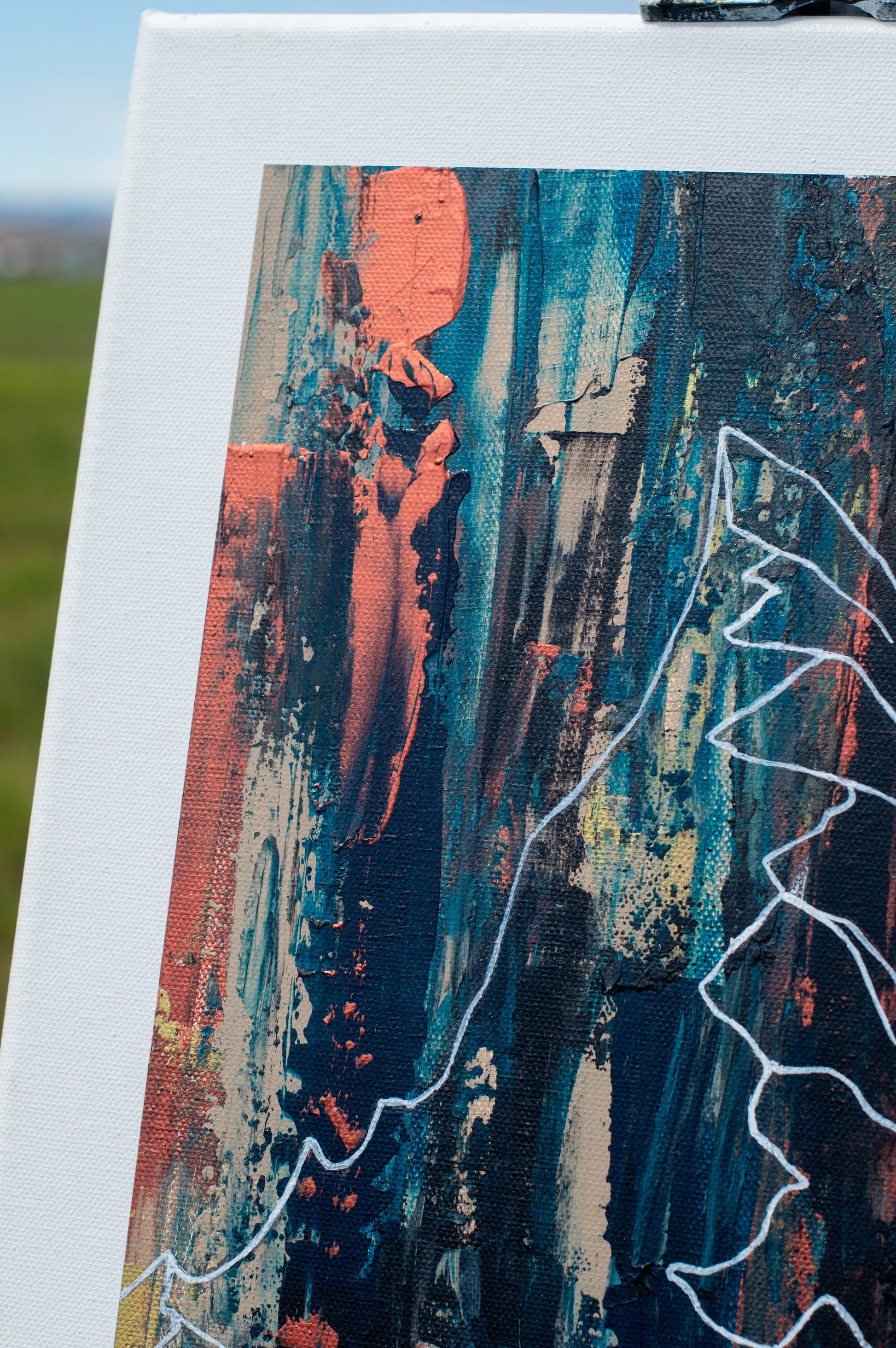 Colors of bronzed rust, and gold, with icy blues that symbolize the money and work that goes into attempting an endeavor that ends in death and injury for many.